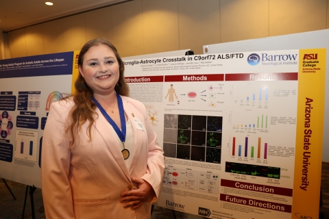 Currently, I am a PhD candidate at ASU working in the lab of Dr. Rita Sattler at Barrow Neurological Institute. With Dr. Sattler, we study the neuromuscular disorder, ALS, which sadly has an average life expectancy of 3-5years after symptom onset, and frontotemporal dementia, the most common form of dementia in individuals under the age of 60. These two diseases happen to exist on a spectrum with shared symptomatic, genetic, and pathological hallmarks. My work focuses on trying to elucidate how neuroinflammation is incited in these diseases and how it may contribute to disease onset and progression by utilizing induced pluripotent stem cells (iPSCs). These are cells which are derived from patient blood samples and allow us to better study disease by providing a human modeling system instead of animal models. iPSCs offer the unique opportunity to study the most common forms of neurodegenerative diseases which are classified as sporadic disease, meaning there is no known genetic cause. From these iPSCs, I can generate the local immune cells of the brain, known as microglia and astrocytes, and study how they interact with one another, and the cell types lost in disease, neurons. I have been fortunate to have my work and education supported by the Barrow Neurological Foundation, the Muscular Dystrophy Association, the LoBrutto Family Fund, End the Legacy, and the ARCS Foundation. Most recently, I received the highly competitive national F31 Fellowship funded through the NIH. This fellowship was awarded based on my proposal to identify neuroimmunological signatures of ALS/FTD that will hopefully lead to the discovery of novel biomarkers of disease and therapeutic targets to help diagnosis and treat this devastating disease spectrum. The recent advances in therapies for neurodegenerative disease, highlight the promising future that may be possible for patients with the continued support for scientific research like mine.
